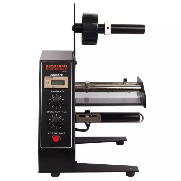 It features an automatic re-winder, which eliminates the mess while operating. This automatic label dispenser also provides a clean cut and wrinkle free label. It is ideal for assembly lines, manufacturing, retail locations, and anywhere where small labels are used.